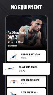 3 levels of workout plans help you build arm muscles step by step. Whether you are a beginner or a pro, you can find workouts that are suitable for you. Different exercises are prepared every day to keep it fresh and exciting.