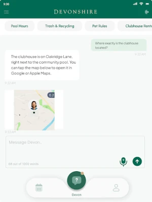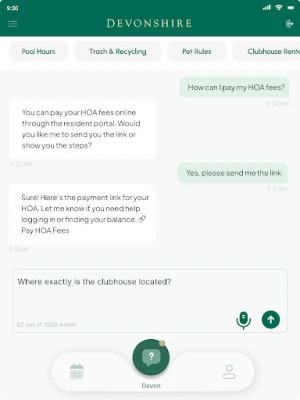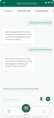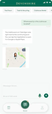 The Devonshire Community App combines smart AI assistance with essential HOA features — exclusively for Devonshire residents.