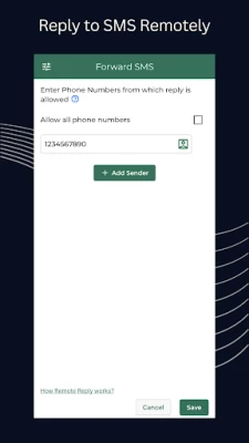* This SMS Forwarder app automatically transfers the SMS received on your phone to a phone number, email, telegram, or URL.