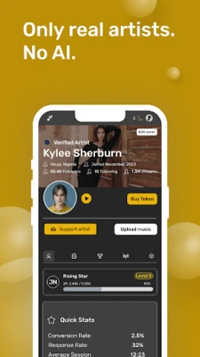 Get a custom artist page to promote your music by sharing it online. Keep 100% of earnings!