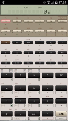 Used as a calculator the FX-602P simulator will exceed most other calculator available. The FX-602P simulator supports all arithmetic, trigonometric, logarithmic, hyperbolic, statistical functions and all alphanumeric display options of the original calculator.