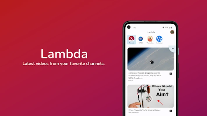 Lambda gathers all the latest videos from your favorite channels and presents them in one convenient place.