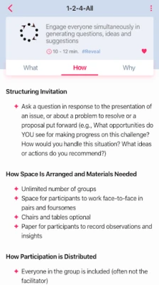 This app helps you to get started using Liberating Structures by serving you as a practical Workshop Companion that is always at hand.