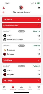 - Field Maps & Locations: Easily navigate tournament venues with our field map.