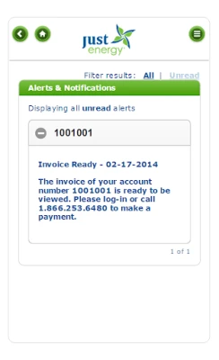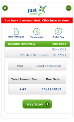 Alerts & Notifications – Receive bill alerts as soon as your Just Energy bill is ready. Our friendly payment reminder notifies you days before your payment is due and when payments were received.