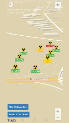• Radiation Map which is a mapping feature using Google Maps. Now you can start mapping radiation levels on map around areas.