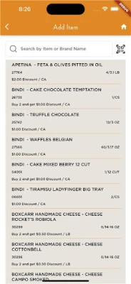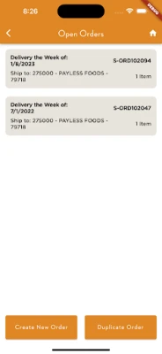 Customer app functions include: Search vendors, brand name and item name via search box or QR scanner Create separate orders based on ship week and business locations Receive an order confirmation for submitted orders