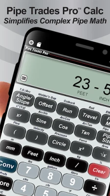 Pipe Trades Pro Calculator simplifies intricate calculations into straightforward, swift procedures, enabling you to devote more time to hands-on tasks and less time crunching numbers. Harness the advantages of technological innovation and elevate the efficiency and precision of your workday with the Pipe Trades Pro Calculator.