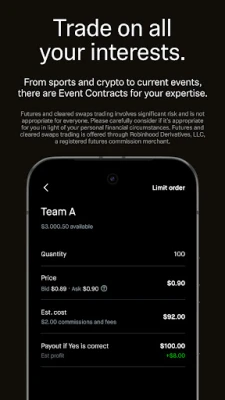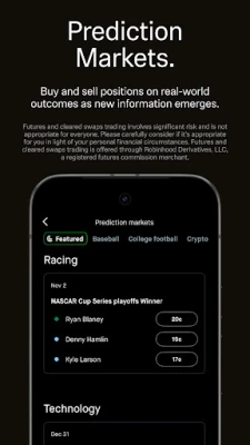 Futures, options on futures, and cleared swaps trading involves significant risk and is not appropriate for everyone. Please carefully consider if it's appropriate for you in light of your personal financial circumstances. Futures, options on futures and cleared swaps trading is offered by Robinhood Derivatives, LLC, a registered futures commission merchant with the Commodity Futures Trading Commission (CFTC) and Member of National Futures Association (NFA).