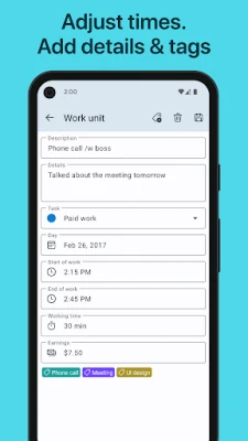 • Cross-platform time card / work log app, works for all your devices (Android, Windows, iOS, macOS) incl. Cloud sync