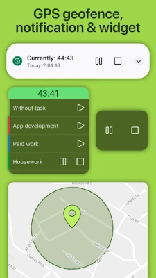 • Auto-start/stop when arriving/leaving the work place using GPS geofencing