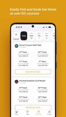 Book tee times, track your scores, join fun in-app games, and stay connected with your golf crew — all while racking up Yards points for everything you do on and off the course.